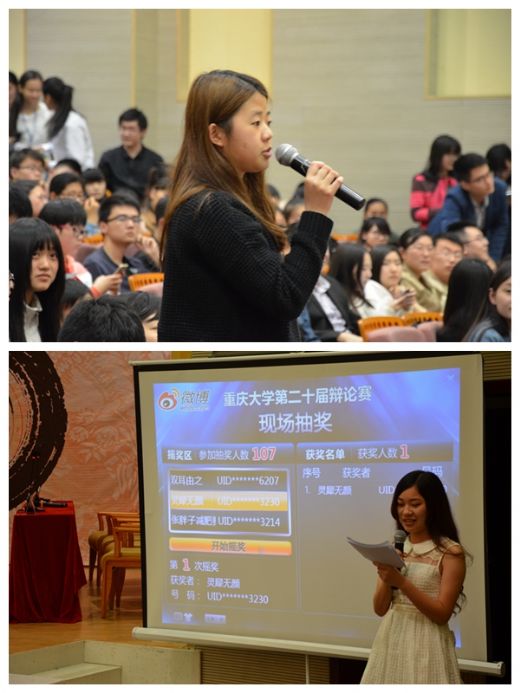 在观众提问环节,场下的观众积极踊跃,辩手从容不迫,一一应答,赢得了现场一片掌声。而随后的微博抽奖环节再一次引发了高潮。
