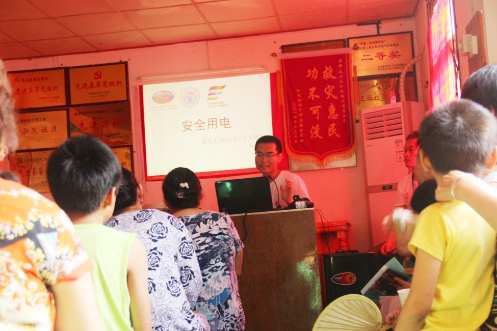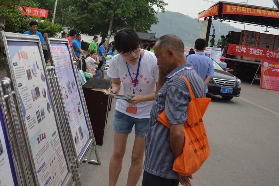 2014年7月9日上午,由重庆市电机工程学会、永川区科协联合主办,重庆大学电气工程学院、国网重庆市电力公司永川供电分公司、重庆市电机工程学会科普工作委员会、永川区松溉镇科协团委、重庆市电力行业协会共同承办的2014年“发展强区,电气护航”暑期三下乡社会实践活动在永川区松溉古镇如火如荼的展开。此次活动为松溉古镇的乡民带来了安全用电的知识与技能和免费的小家电维修服务。