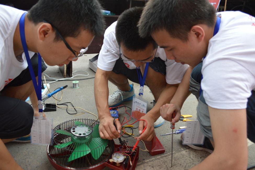 重庆大学电气工程学院“三下乡”团队立足于自己专业、发挥自身特长,为松溉镇的村民送上了免费家电维修的服务。今天恰逢松溉镇赶场,小家电维修现场人潮涌动,村民纷纷上前询问具体情况,得知这是“三下乡”活动免费的服务时,附近的村民很快就带来了自家出问题风扇、吹风机和豆浆机等小家电,住的比较远的也骑上摩托带来了待修的家电。“三下乡”团队的维修人员发挥自己的专业特长对每一件待修家电都进行了认真地检查,自己能够处理的耐心地对其进行了修理,自己不能够处理的也对村民做了详细的讲解,为他们进一步的修理提供了依据。村民们在领取自己的家电时都漏出了开心和感激的笑容。