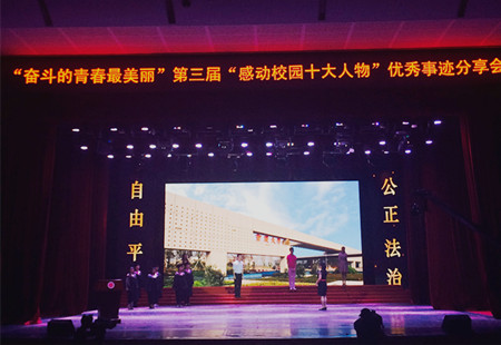 近日,由市委宣传部、市委教育工委、市教委、团市委、市学联联合开展的第三届重庆市感动校园十大人物评选活动揭晓,重庆大学通信工程学院党委副书记袁利老师荣获重庆市“感动校园十大人物”称号。6月11日,第33届重庆市大学生“校园之春”活动闭幕式暨“奋斗的青春最美丽”第三届“感动校园十大人物”优秀事迹分享会在重庆师范大学举行,市委副书记张国清,市委常委、宣传部部长燕平等领导出席活动。会上,播放了校团委组织拍摄的袁利老师事迹短片,作为重庆师范大学的优秀校友,重庆师范大学校长周泽扬亲自给她颁发了奖杯,全场响起了热烈的掌声。