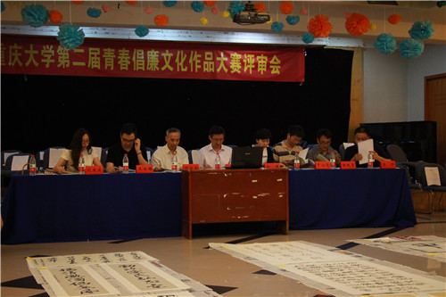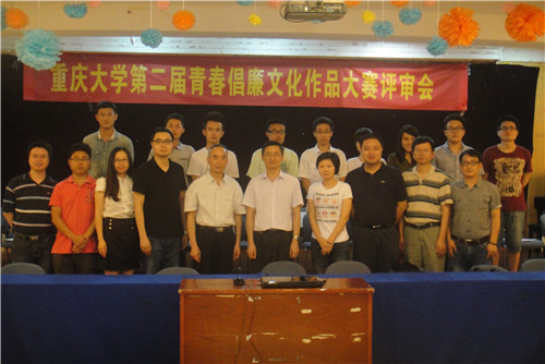 2014年6月24日,重庆团市委纪检组组长、党组成员直属机关党委书记毛羽、重庆团市委直属机关党委副书记、直属机关纪委书记向倩、重庆大学纪委副书记、纪检办主任、监察处处长何云金、重庆大学纪检办副主任、监察处副处长于心党、 市纪委宣传部王柱雄 、重庆大学艺术学院老师谢秩勇、重庆大学团委书记陈科在重庆大学学生活动中心B12多功能厅对重庆大学第二届青春倡廉文化作品大赛作品进行了终评。