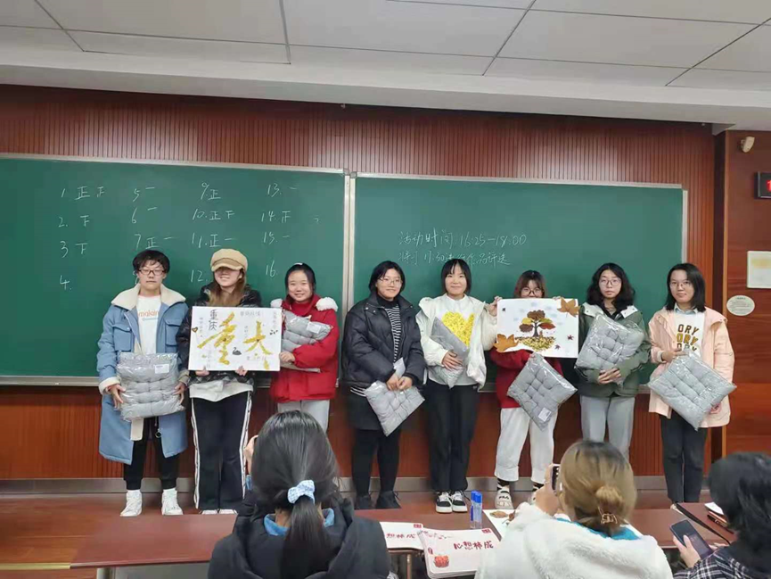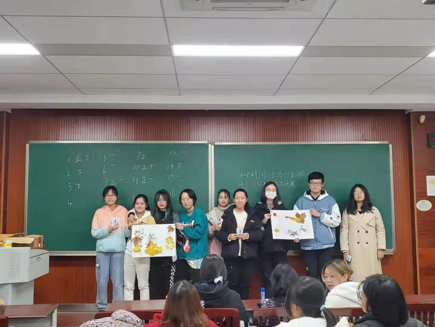 2021年11月24日16:25, “第二课堂”美育课程——“一叶寻冬”树叶贴画活动在虎溪校区第一教学楼教室D1343顺利开展,80余位热爱手工制作、心灵手巧的同学参加此次活动。