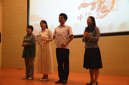 比赛的最后,主持人宣读了获奖名单。来自新闻学院的赵欣茹、李佳悦两名同学以其贴近实际的选材,极富感染力的表达从12名选手中脱颖而出,荣获比赛的一等奖;另外,陈伟佳、罗蓉、张一同、王若涵4名同学获得二等奖;孟凡、张悦、张浩、汤思蕊、王沛奇、周芳冰六名同学获得三等奖。至此,本次“中华魂”(放飞梦想)演讲比赛决赛完满结束。