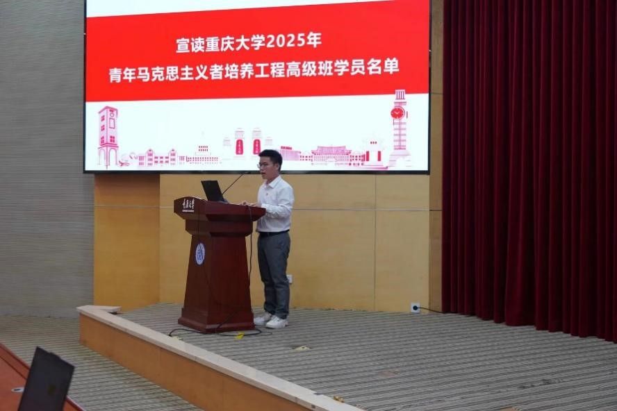 随后,揭建龙学长正式宣读重庆大学2025年青年马克思主义者培养工程高级班学员名单,包括本科生班和研究生班,共计100名学员,标志着重庆大学2025年青年马克思主义者培养工程高级班正式成立。