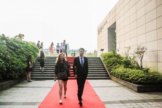 在颁奖典礼开始前,为使本次颁奖仪式更显隆重,机械工程学院特意增设了“红毯”环节,让每位嘉宾和观众在入场时走过铺设在报告厅门前的一段红地毯,并在“告别虎溪”的海报上签字以及拍照留念。嘉宾和观众们有的盛装出席,有的携伴前行,有的满脸欢笑。他们个个迈着自信的步伐,仿佛真正的电影明星,伴随着相机不断地“咔嚓”声与闪光灯,画面一一定格,记录着每一个人的风采。
