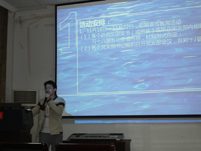 会议由团委副书记杨成主持,会议主要分为三个阶段:首先,由团委书记杨晗向大家介绍了团委前半学期的主要工作及活动进展情况,对各部门的工作给予了肯定,但同时也指出了其中存在的一些不足,并对后半学期的工作安排提出了更高的要求。接着,刘露同学代表研究生辩论队做总结汇报,鼓励大家积极参与到学院团委活动中来。之后,杨成向大家做了“关于动力学院团委学生会更好地为广大同学服务开展学术活动的调研”的报告,提出要提高同学们参加学术活动的积极性,不仅要加强宣传力度和对活动经费的支持,还要丰富活动形式,比如增加互动式讲座等。