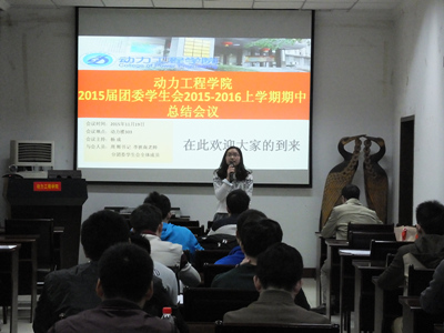 2015年11月19日下午2点30分,动力工程学院研团委及学生会2015-2016学年中期总结会议于A区动力楼303会议室如期举行,周辉书记及动力研团委学生会全体成员参加了此次会议。