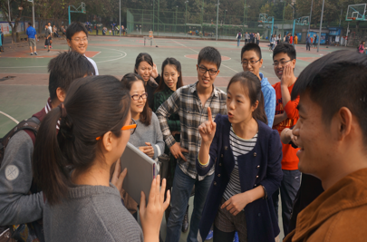 本次活动,几组游戏同时开始,两个小时内率先完成7项游戏的队伍将有机会赢得加分。部分团队还有机会抽得技能卡。技能卡可以帮助自己队伍加分或为其他队伍减分。如此,大家的积极性被极大地调动起来,篮球场瞬间便被同学们满满的热情点燃。“瞎子背瘸子”游戏中,被眼罩蒙着眼睛的男生需要在背着的姑娘的指挥下绕曲线、越障碍、踩气球,并顺利回到起点。一些原来并不认识、被工作人员安排进一队的同学开始还有些羞涩,不过为了团队的荣誉,大家很快便放开了。背上的姑娘一边仔细思量着战略战术,一边沉着地拍着男生的肩膀指挥前进。而男同学也很有默契,不辱使命,在短短三、四分钟的时间里便顺利完成了整个团队的比赛。游戏过程中,城环妹子,不娇柔不造作、反应快速、思维敏捷,得到了土木汉子们的一致好评。有土木男生坦言,城环妹子的质量普遍偏高;而土木男生身手矫健、体贴女同学的优良品质也得到了城环女生的肯定。
