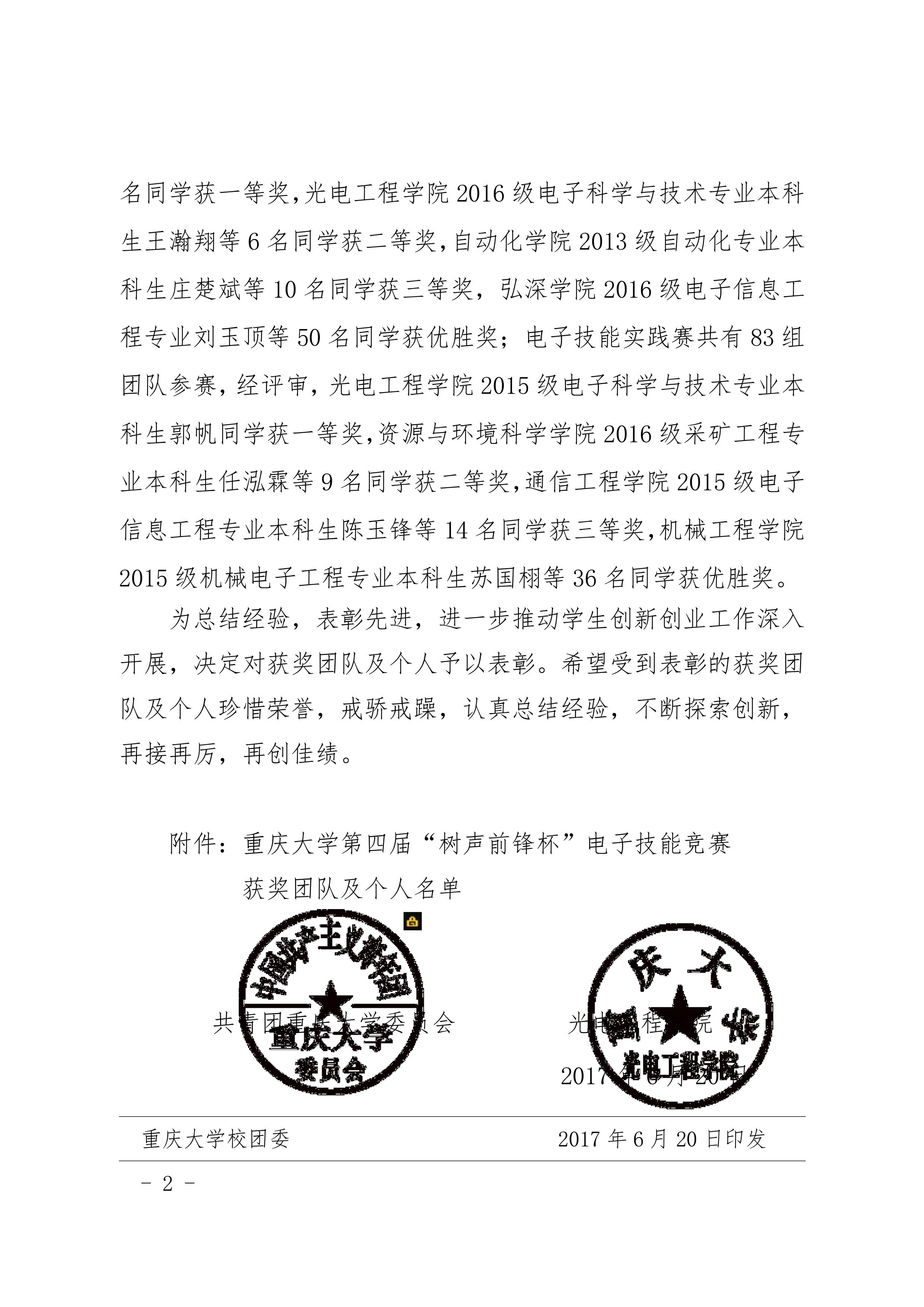 附件:重庆大学第四届“树声前锋杯”电子技能竞赛获奖团队及个人名单