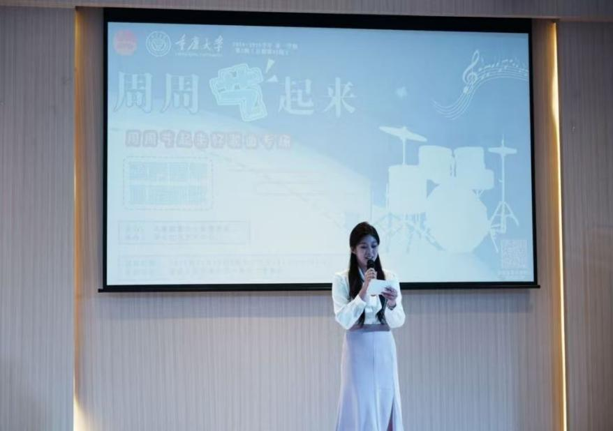·11 月 23 日,“以爱的名义”——2024-2025 学年第一学期“周周艺起来”活动第三期(总第 94 期)在虎溪校区小剧场顺利举办。本次“周周艺起来”以音乐会的形式,展示了多样化的音乐风格。这场音乐会不仅是一次音乐的交流,更是一次心灵的碰撞,将不同文化背景下的爱与梦想,共同呈现在观众面前。活动线下覆盖 300 余人次。