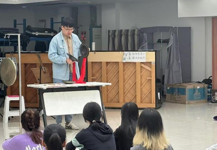 ·11 月 13 日,一场别开生面的川剧体验课在虎溪校区学生活动中心 506 教室开展。本次课程与学生艺术团戏曲队合作,学生艺术团郑欣言同学与马起明同学向大家介绍了常见的川剧乐器、川剧服装的特点和象征意义以及《阖宫欢庆》等经典剧目,赵倩老师还特别安排了川剧化妆技法的展示。此次活动的成功举办,为校园文化生活增添了一抹亮色,也为川剧艺术的传承与发展注入了新的活力。