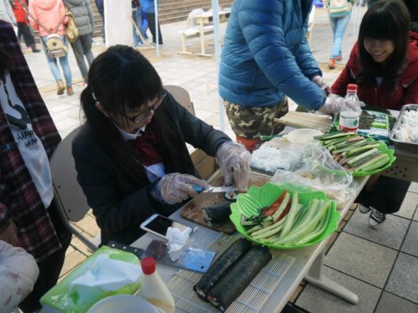 作为日本文化在本次活动中最为突出展现的摊位,寿司·和服·日本技艺摊位聚集了许多对这些日本文化感兴趣的学生。寿司摊位处教授大家制作寿司的方法和技巧,和服摊位处展示着和服与众不同的穿法,技艺摊位处讲解了日式扇子的画风。同学们先是参与了问答互动环节,然后便开始真正体验起了日语独特的风俗文化。品尝着新鲜出炉的美味寿司,身着日式风情的美丽和服,手里还在用画笔描绘着源于自己创意的扇子,同学们真正体味到了不同的文化。