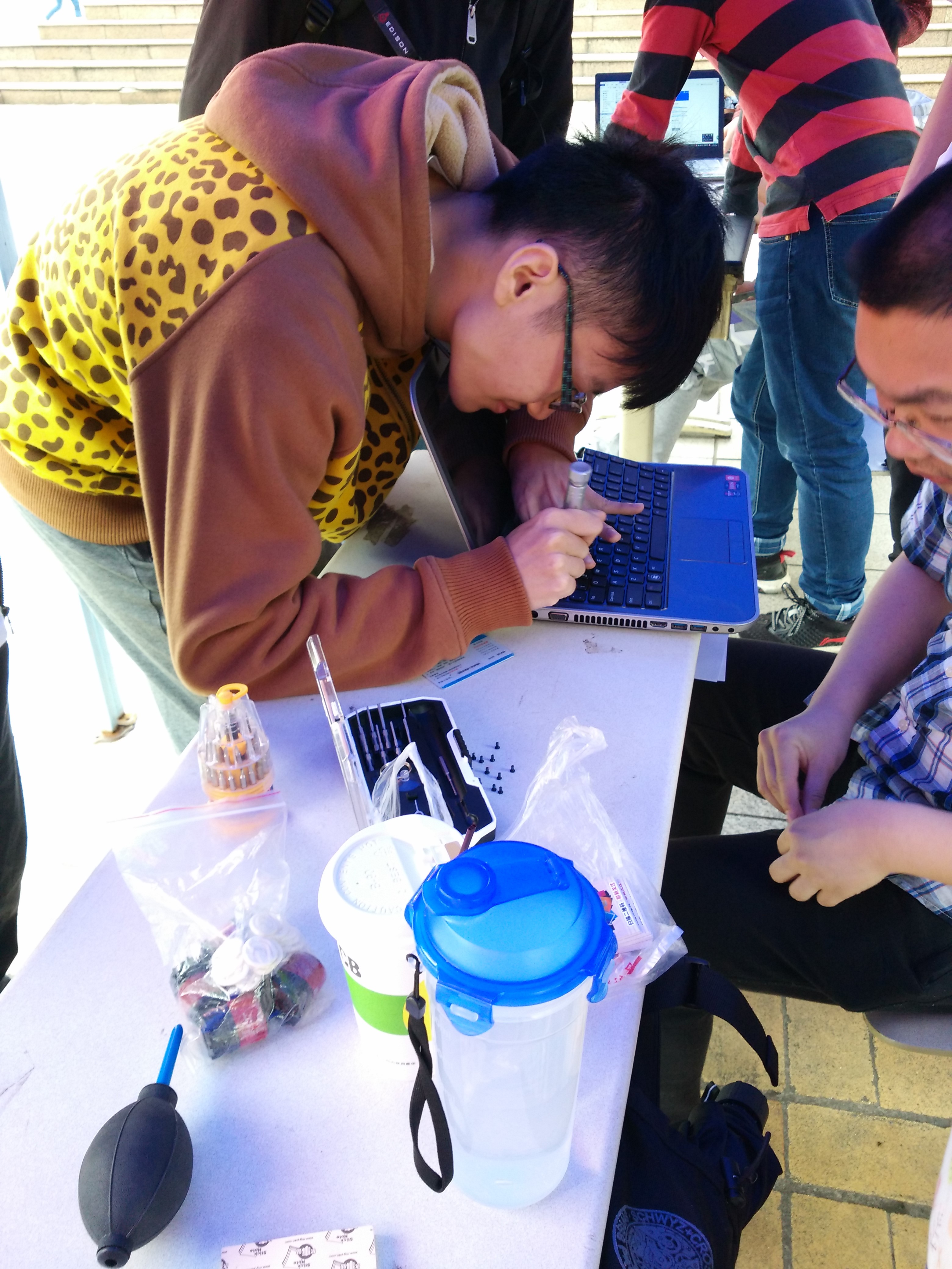 本次义诊活动时间从早上九点半持续到下午六点。早上十点左右,重庆工商大学的小红帽协会同学抵达一食堂东广场。活动开始不久,就有同学闻讯过来修理电脑。计算机协会技术部人员在对方签订了拆机协议后,开始着手拆卸电脑后盖。将拆出的零件分开归类放好,技术部人员用多种工具着手清理电脑内部。一番忙碌后,收到清理完毕并且完整装好的电脑的同学对于无偿提供服务的计协技术部人员表达了感谢。