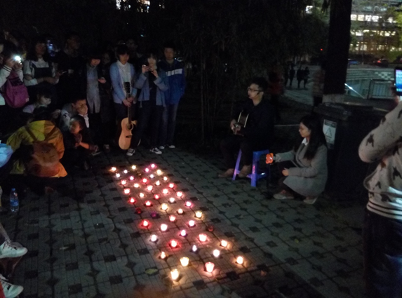 紧接着是个人秀环节,协会请来了两个重庆大学的研究生来献唱,他们不仅颜值高,歌还唱得好,配着简单的吉他声,整个活动现场开始沸腾起来。天星桥的同学们也不甘示弱,纷纷上前展现自我风采。