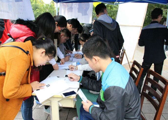 2015年11月19日星期四下午学习沙龙社团于一食堂东广场成功举行了情商大赛第一轮的比赛——“疯狂成语”。