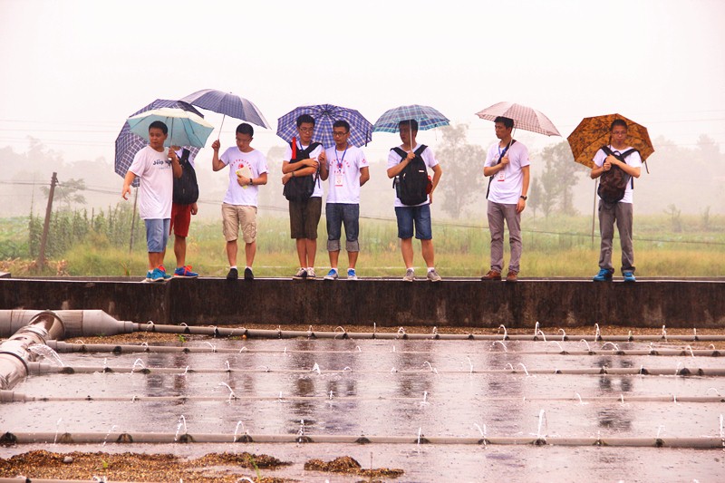 7月14日上午九时,电气工程学院“三下乡”实践团队20余人冒着大雨到达万古镇污水处理厂参观调研。