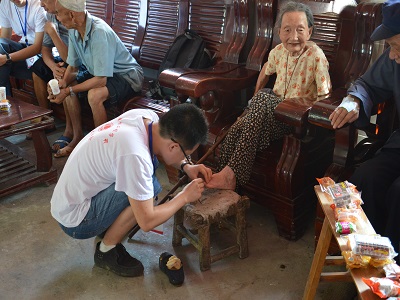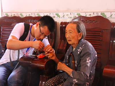 有一种感受叫做感同身受。当他与一位有轻微老年痴呆和眼疾的老奶奶闲聊时,因老奶奶耳朵不好使,他只能做个倾听者,听着老奶奶反反复复的讲诉自己年轻时受过的苦。心细的他发现老奶奶指甲有很多伤痕,一问才知这位92岁高龄的老奶奶早就看不清东西了,导致之前自己剪指甲时一直剪到肉里却浑然不知,于是敬老院索性没收了指甲刀,并定时为老奶奶修理。“看到她仿佛看到了我的奶奶,我从小就跟着奶奶,是奶奶把我抚养成人,如果她能活到现在,估计也像这位老人家一样的年纪,所以忍不住想为她做些事情。”姚同学帮着老人剪完手指甲,又帮着剪脚趾甲,而老奶奶的眼睛里早已藏满了闪烁的泪花。