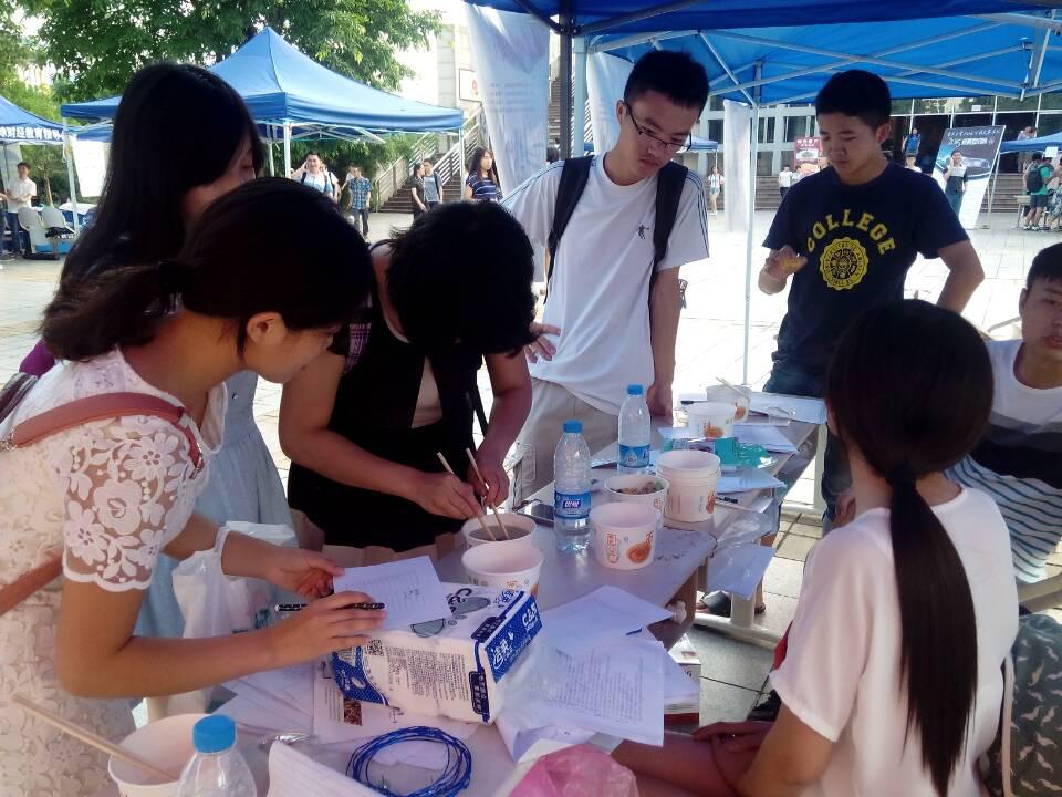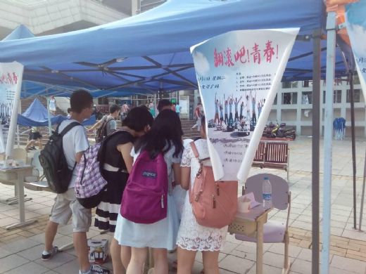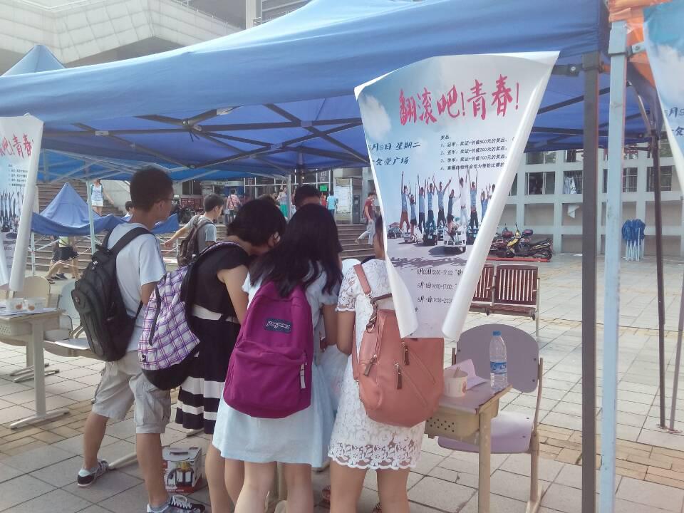 2015年6月9日周二早上9点,由重庆大学学习沙龙社承办的“翻滚吧,青春”主体比赛第一轮比赛在重庆大学一食堂广场正式进行。周二下午天气炎热,但是学习沙龙的工作人员不惧炎热在烈日下耐心的给参赛人员讲解游戏规则。丰厚的比赛奖品,好玩的游戏以及工作人员的热情吸引了众多同学前来参赛。比赛场地异常热闹。参赛人员将在3分钟内边答题边夹弹珠,答题过后进入加分时段,即参赛人员进行套圈游戏,套中大件物品即可得10分,小件物品即可得5分。套中的物品即可归参赛人员所有。比赛时段虽然为午饭时间,但是大家的热情丝毫不减,人数依旧不少。比赛现场热闹非凡,欢声笑语。