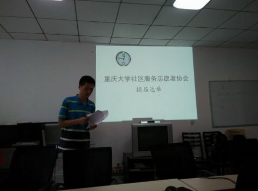 2015年6月14日下午12:30,社区服务志愿者协会换届选举在松三222活动室顺利举行。出席本次选举的人员有社区服务志愿者协会指导老师张春艳,会长王昊远,副会长詹鑫,建设指导中心的肖昭贤和舒湛以及协会各部门成员共18人。本次选举旨在选出协会下一届的管理层成员,搭建新的组织架构,为协会的更好发展奠定人员组织基础 。