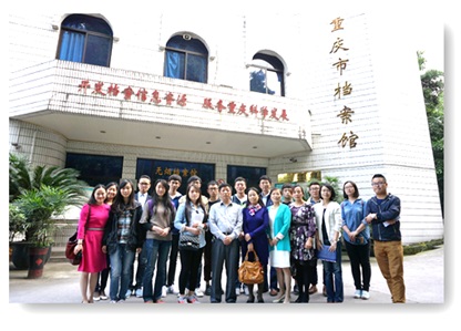 2015年5月5日下午,口述历史志愿者协会廖梦琳、赵澎、董小磊、梁冬梅、晏可艺、周文杰6位学生代表参加了我校档案馆与重庆市档案馆举办的“校馆互访”参观活动及交流座谈会。我校档案馆、宣传部校史办公室、校团委学生会干部代表等参加了本次活动。