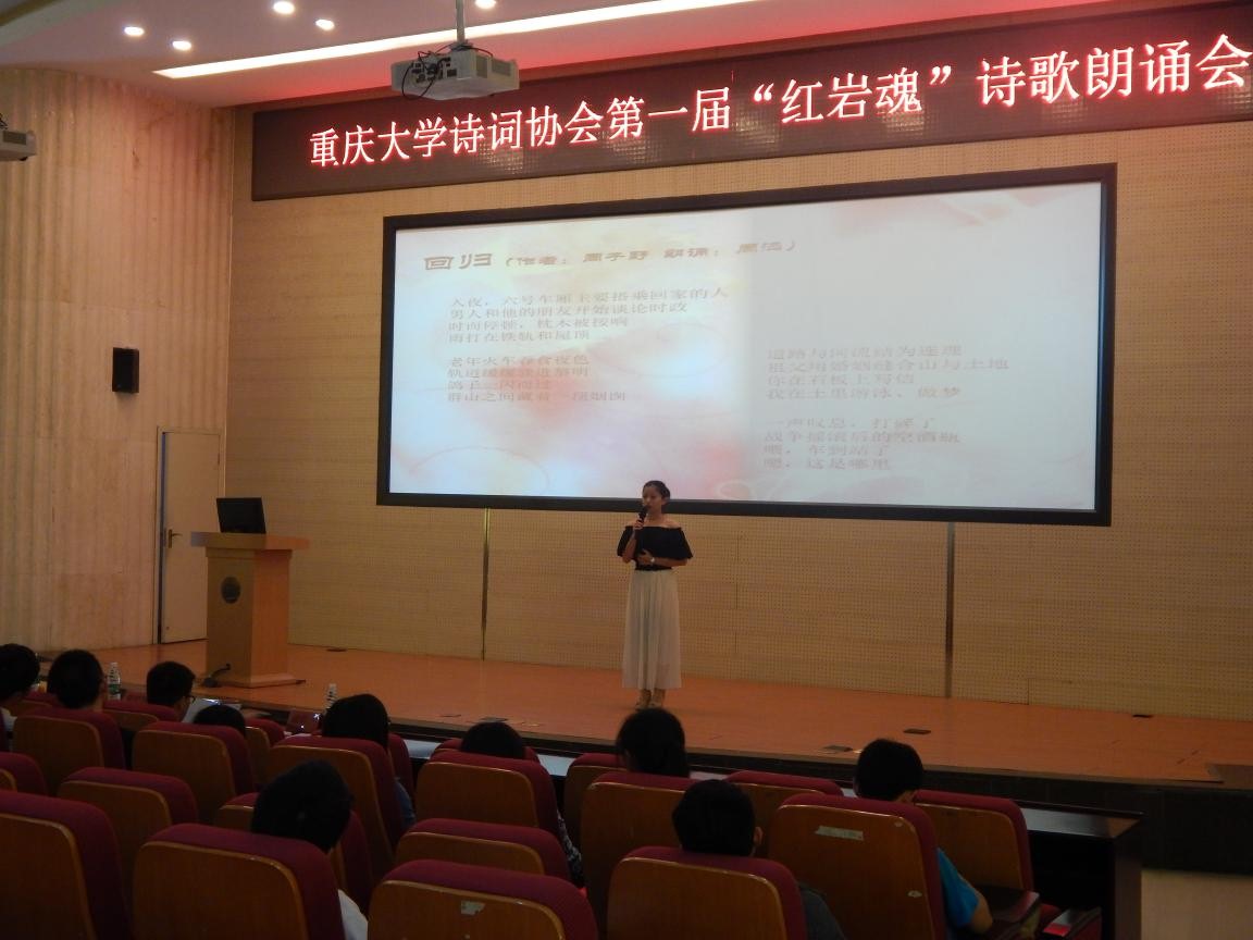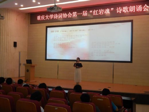 2015年5月17日,由重庆大学学生社团联合会主办、重庆大学诗词协会承办的第一届“红岩魂”诗歌朗诵会活动,在虎溪校区综合楼DZ126学术报告厅成功举办。
