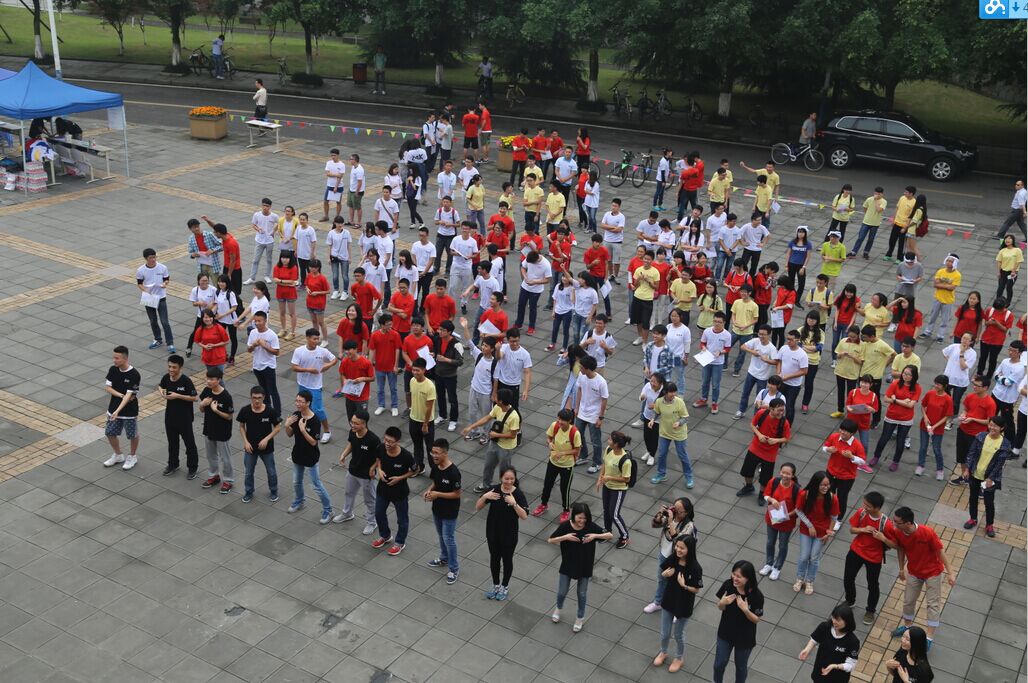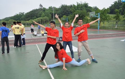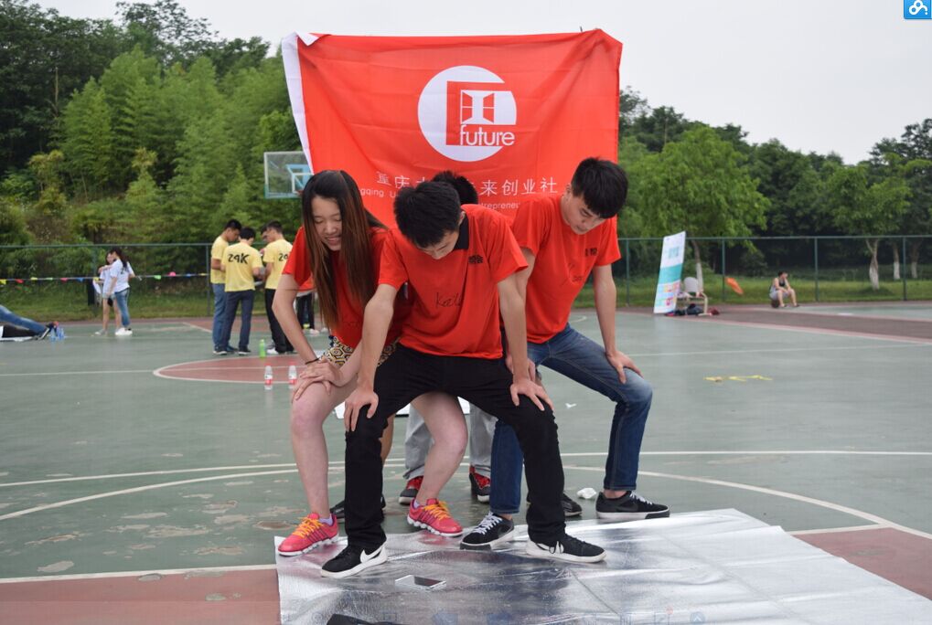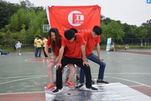 参赛选手们立即奔赴比赛场地,购买比赛项目,开始发挥自身才智、团队力量,争分夺秒的奔跑在遍布虎溪校区的各个游戏点去做游戏赚取更多的货币。工作人员的明确分工使得活动有条不紊的进行,一食堂南广场的字形板凳不能说不是一道风景线,穿着水果色T-shirt的队员们犹如散落的果冻。场上的他们高声提醒着伙伴时间,因为他们知道分分秒秒都是“金钱”;抱着队员“穿越封锁线”展团队风采;机智的旋转“让拖鞋回家”;高技能的模仿边防战士更加懂得什么叫“团结就是力量”;参加“帮帮帮”的选手无疑是烧尽了脑细胞去完成任务。