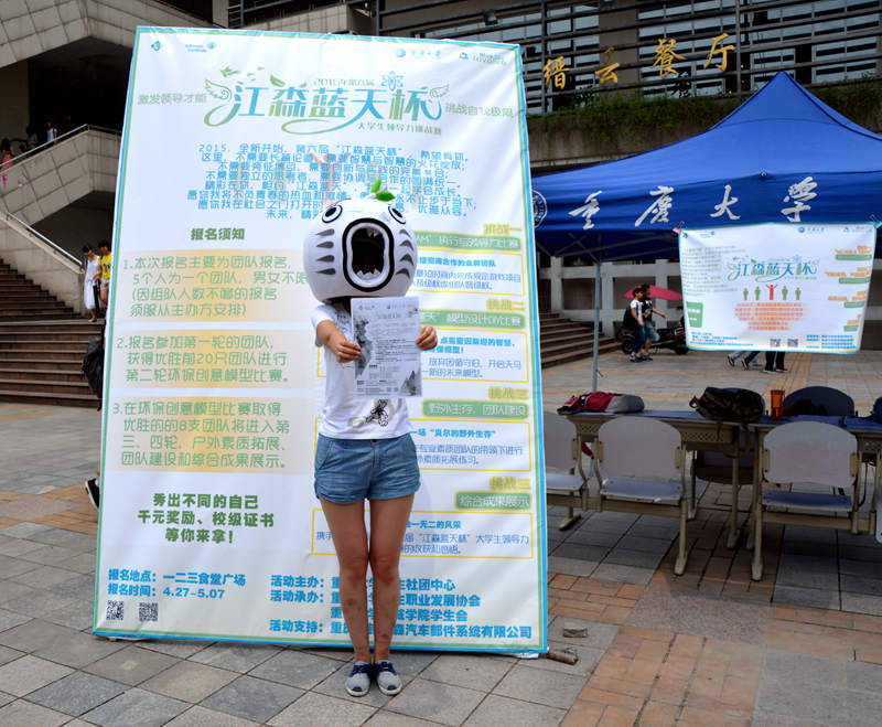 4月27日始,重庆大学第六届“江森蓝天杯”大学生领导力挑战赛展开为期十天的报名宣传活动,在虎溪校区一二三食堂广场设立报名点,同时为方便同学们报名,开通线上邮箱报名渠道,着实吸引了广大师生的注意。