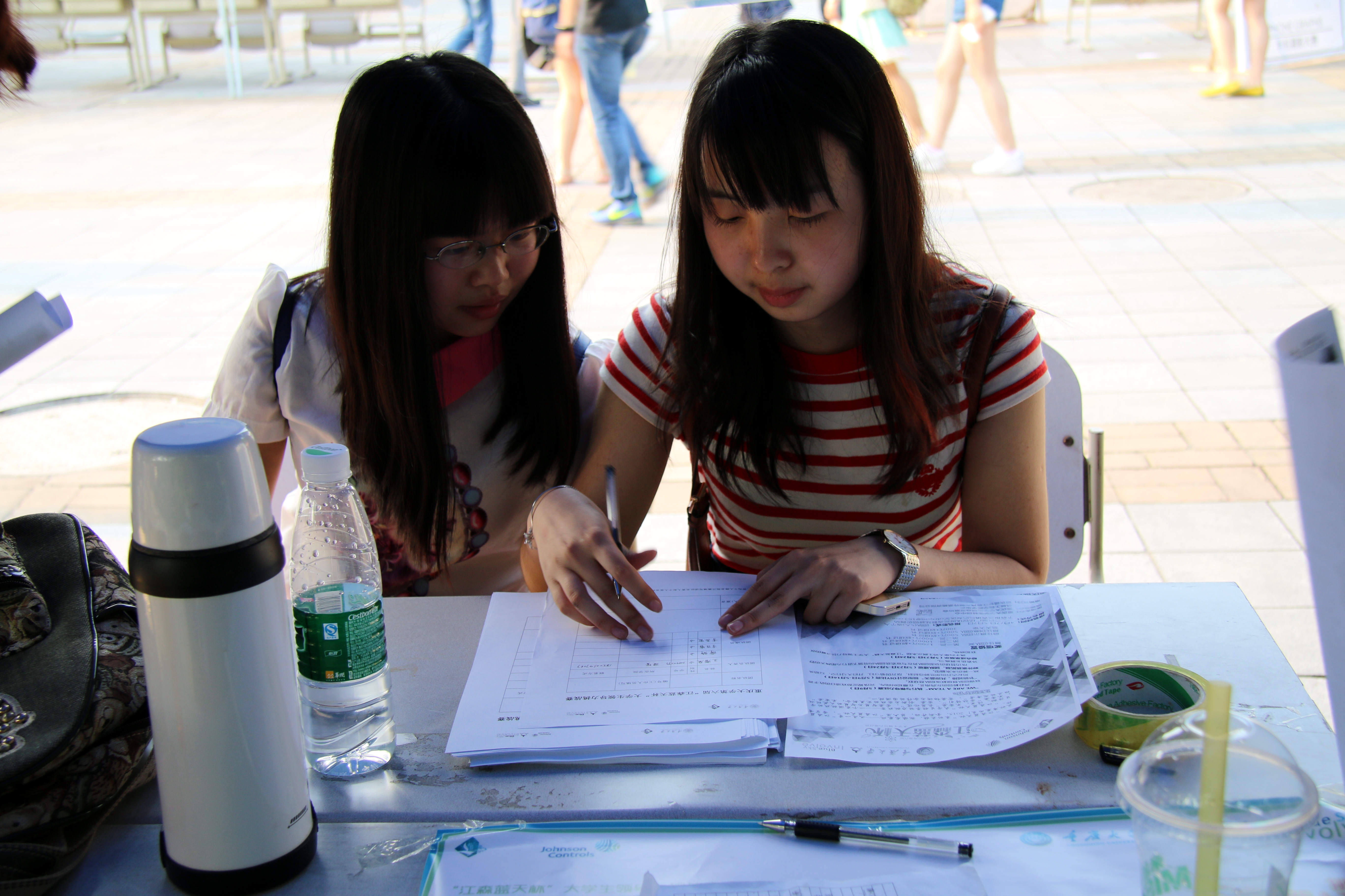 针对报名第一天状况不佳的情况,负责组织此次比赛的工作组通过召开会议商讨对策,同学们共同讨论出贴宣传贴纸、加印海报、成立特别宣传小组等计划方案以引起同学们更多的关注,线上报名和线下报名同时进行。29日开始,特别宣传小组搬来了可爱的玩偶帽子,用憨态可掬的动漫形象进行宣传。在工作组的努力下,报名状况有很大起色,越来越多的同学前来报名。一位在场宣传的工作人员吟诗以表自己对于此次比赛的理解和对同学们踊跃报名的期盼:“浩浩乎江森兮,办活动以素拓。威武我重大兮,望竞技来报名!”