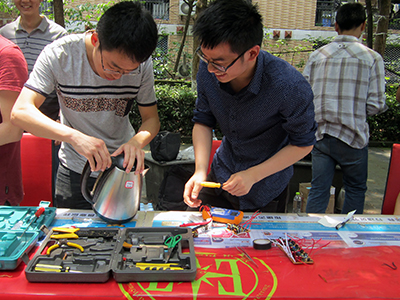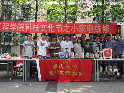 2015年4月28日中午,由重庆大学电机工程学会主办、重庆大学电气工程学院团委学生会及研究生分团委分会协办的“易修小分队校园行之小家电维修”活动在重庆大学A区一食堂广场举行,学会会长张晏铭出席了本次活动。最终,易修小分队共接收小家电22件,并修好其中的21件。
