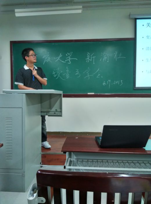 通过聆听不同的观点,在座的同学或多或少都拓宽了对于本书的理解,加深了对于阅读的兴趣,新渝社作为组织方表示特别欣喜。会后13级社员陈艳秋提出了在讲演环节之后增加讨论组的建议,在社长组织大家表态通过后,决定在第十周周末(即5月9日)的第四次分享会中将讲演间讨论改革为讲演后小组讨论,以增加更多思想的碰撞。小编在此代表社长,对陈艳秋同学的建议表示衷心的感谢。