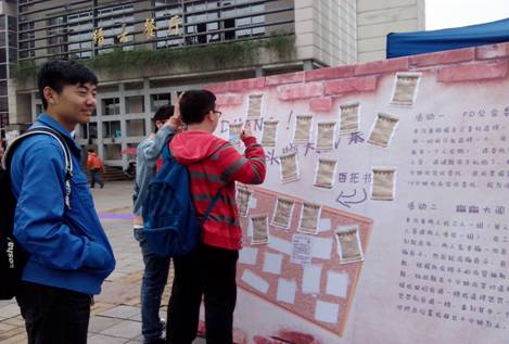 此次活动包括前期线上预热,活动的前期准备,活动的执行和最后反馈这4个阶段。前期主要是在微博、人人、贴吧和微信平台圈上进行本次活动的宣传。活动前期,按照策划书的内容,社团各个成员分工明确进行活动的准备。活动的现场,同学们踊跃的参与到现场的活动,与我们的学霸进行“壁咚”,获取学习“秘籍”,现场气氛热烈。
