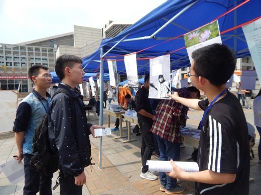 同学们在下课后,陆续走到一食堂广场。有不少热爱诗词的同学参加了活动。他们关注了诗词协会的微博,领取了诗词协会制作的精美明信片,也读着海子的《日记》《半截的诗》等诗作,感受海子的诗和情。捧着《雅风》和明信片的他们,仿若真如海子所说,这一刻,他们成为了幸福的人。或许他们朗诵不出当时海子的心情,但他们读出了此刻他们心中的海子。