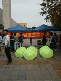4月2日下午12点,协会的工作人员来到一食堂东广场进行现场旧雨伞募捐和诚信签名活动,并向学生宣传爱心雨伞,工作人员的耐心讲解、热情服务促使更多的学生参与进来。下午三点半,宣传活动结束,工作人员将雨伞和伞桶分别放置在综合楼西侧出口、一教西侧出口、一教中间出口及图书馆一楼大厅,这几处地方皆是由协会负责人前期进行调查过后选择的,都是学生来往较多的地方,人流量大,能最大限度的利用爱心伞。此外,为保证借伞活动的秩序,工作人员须到各个安置点进行定期检查。活动期间,协会工作人员合理分工,相互合作,互帮互助,推动了“爱心伞”活动的顺利开展。