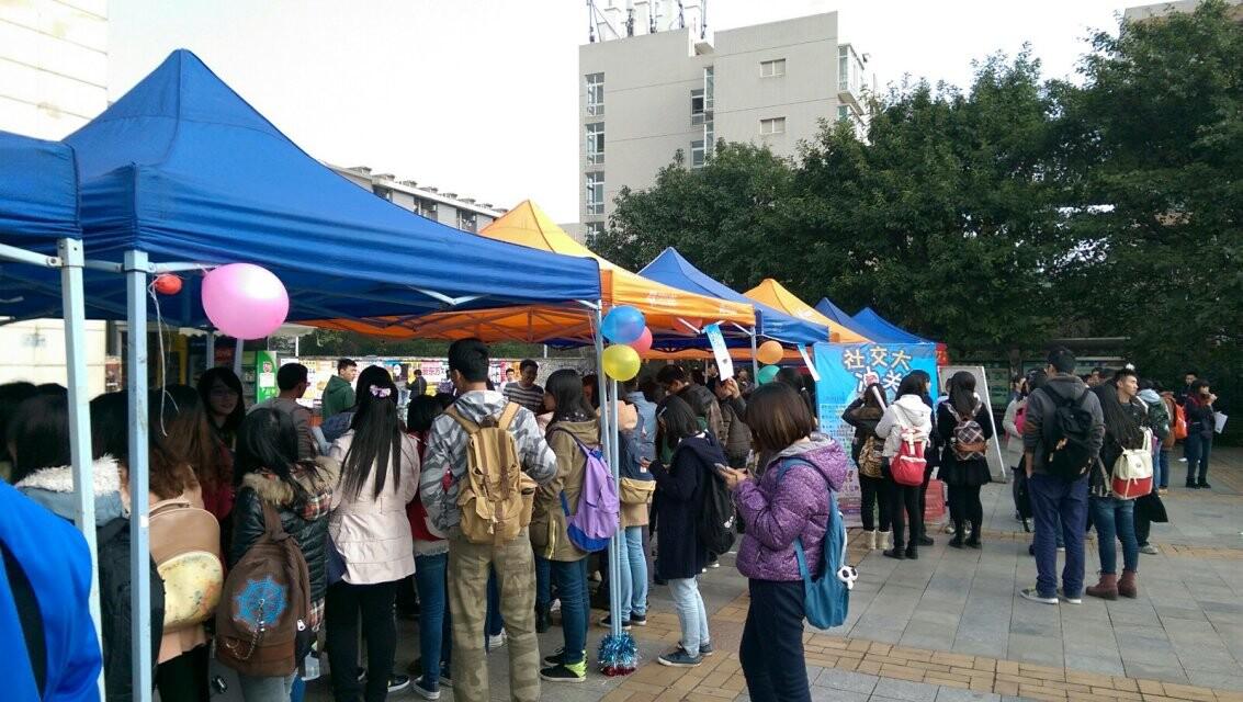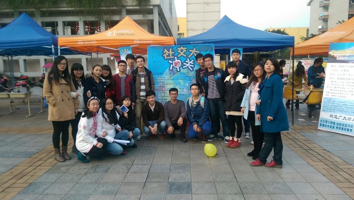 11月27日正午12时,由重庆大学学生社会交际协会举办的“社交大冲关”闯关游戏活动在一食堂东广场隆重举行。(下图为活动现场)