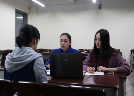 纳新工作井然有序地进行着,各个教室里候选人们都在尽力展现出自己最好的一面。在候选区教室里,有安静等待面试的同学,也有低语的讨论声,采访到一位刚刚经过宣传部面试的女同学。问及面试内容,她说道:“刚开始是要做一下自我介绍,之后是询问自己对软件的熟练程度,问我自己的个人兴趣和工作能力等等问题。”而对于喜欢养生的她来说,平时很少熬夜,但是要在工作和休息之间进行选择的话,她还是会以工作为重。