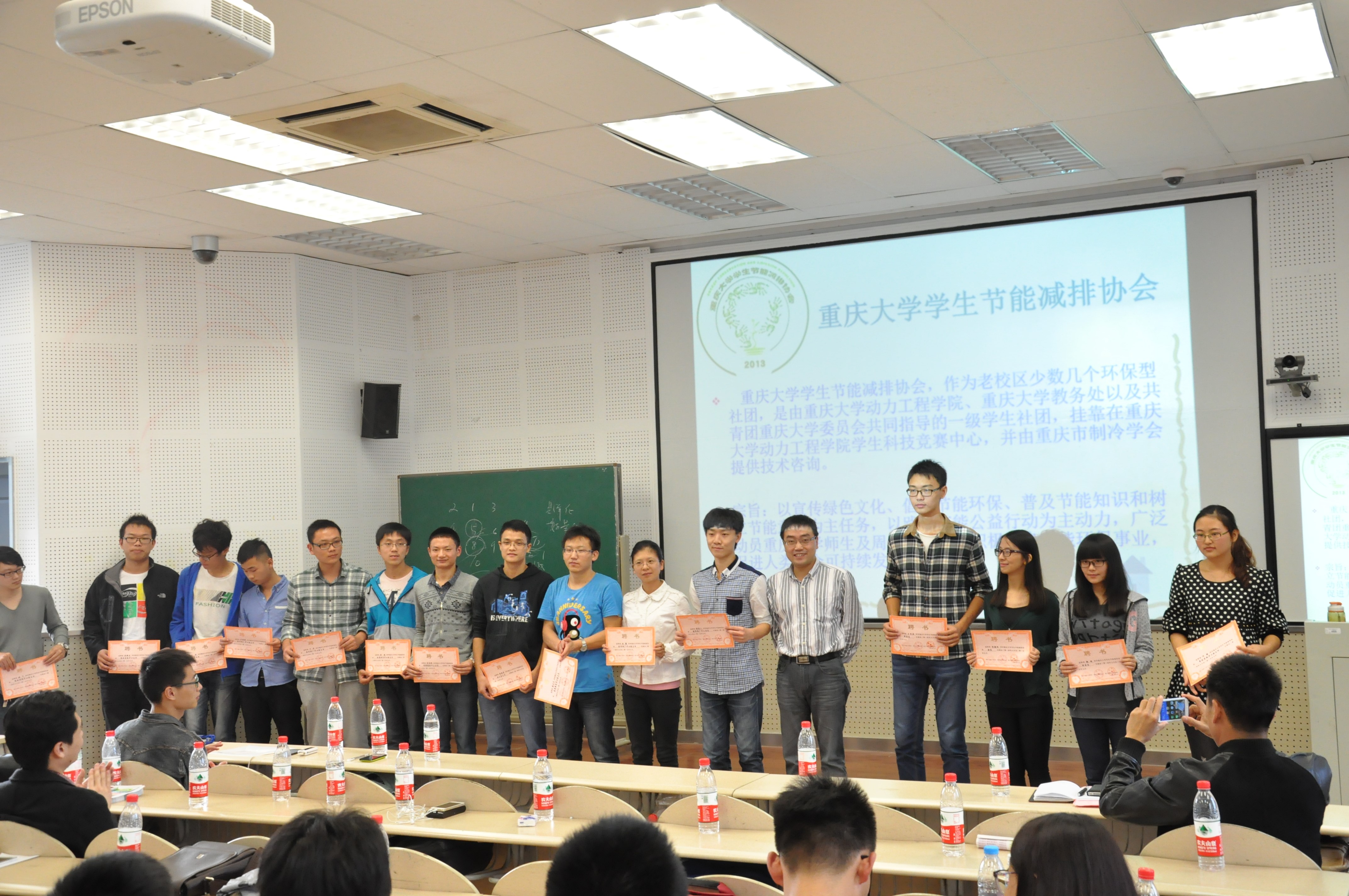 六月艰苦,硕果累累。经历六个月的艰苦奋斗,第七届全国节能减排大赛圆满结束。2014年10月23日下午四点到五点半,由重庆大学动力工程及重庆大学学生节能减排协会共同组织的第七届全国节能减排竞赛表彰大会暨校节能减排协会聘任仪式在重庆大学虎溪校区D1237举行。
