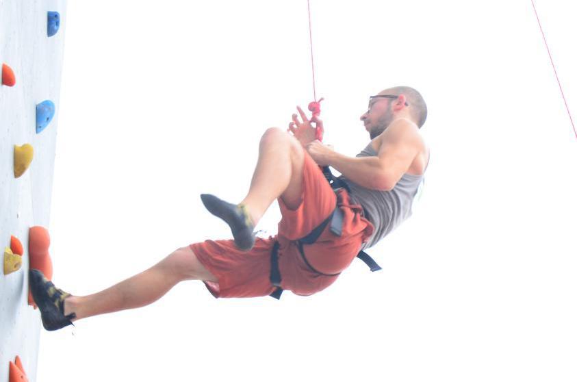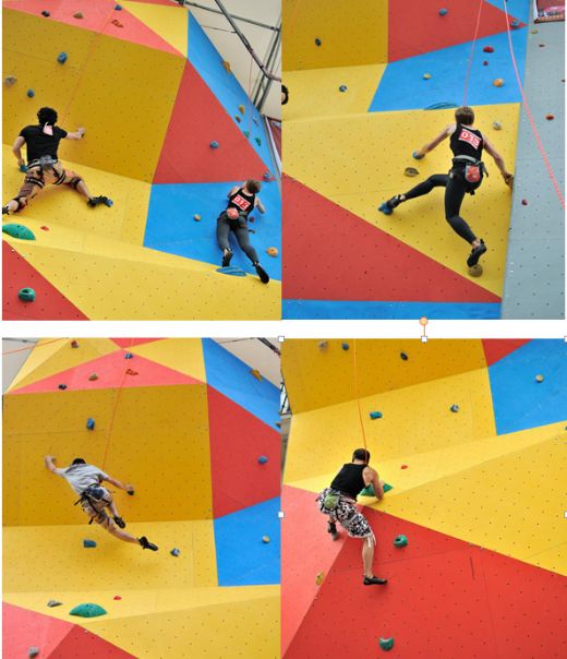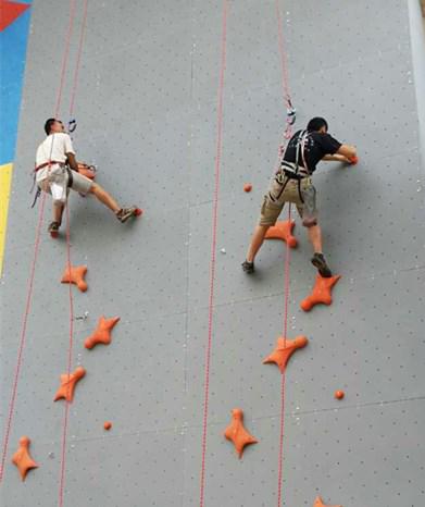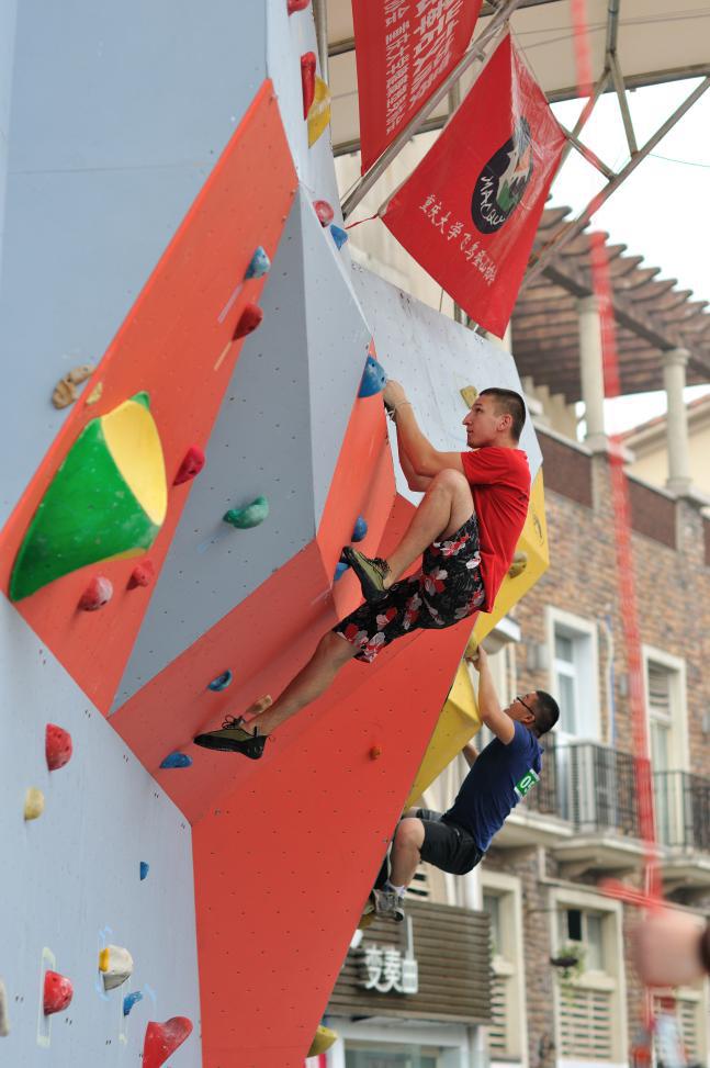 本次比赛分为学生组和玩家组。学生组选手动作略显生疏,攀爬过程却也连贯流畅,能够顺利完成自己的比赛;玩家组选手表现则更为精彩,一次次把现场气氛推向高潮。此外,比赛形式分为速度赛,难度赛,和抱石赛。在三种比赛中,难度赛最惊险,向外倾斜的赛道,不便于选手在攀爬过程中使劲;间隔不等的石块群,让选手们不能手脚同时“着陆”。抱石赛最为精彩,玩家组在这上面“秀”起了自己的技巧,一个又一个漂亮的动作不断赢得现场人员的掌声与尖叫,大家也在其间体会到了攀岩运动的魅力、刺激。