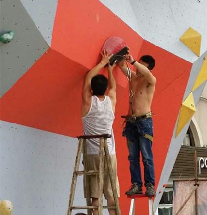 为了确保本次比赛的顺利进行,重庆大学飞鸟登山协会的工作人员很早就来到现场开始准备。由于比赛场地刚建好,各种性能还没进行测试,为了保证比赛能按时进行,协会工作人员还参与到场地施工中,在重大岩馆罗鑫的帮助指导下,协会工作人员在比赛前一天完成了定线,安点,清理场地等工作。而在另一边,比赛当天其余协会工作人员的工作也在紧密锣鼓地开展着,调试现场的音响、布置选手休息区、接待已经来到现场的选手,争取让此次比赛的效果达到最佳。
