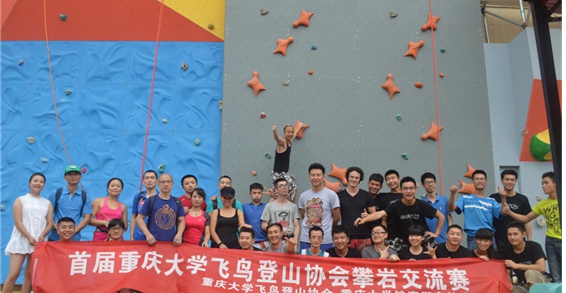 2014年6月8日,由重庆大学飞鸟登山协会举办的“首届重庆大学飞鸟登山协会攀岩交流赛”在熙街二期攀岩馆成功举办。来自重庆各地的100余位攀岩爱好者前来参加比赛,其中包括各个高校的学生、外国留学生以及重庆攀岩爱好者前辈们。比赛吸引了众多观众围观,取得了很好的攀岩推广效果。本次活动由重庆大学社团联合会主办,并由飞鸟登山协会承办。