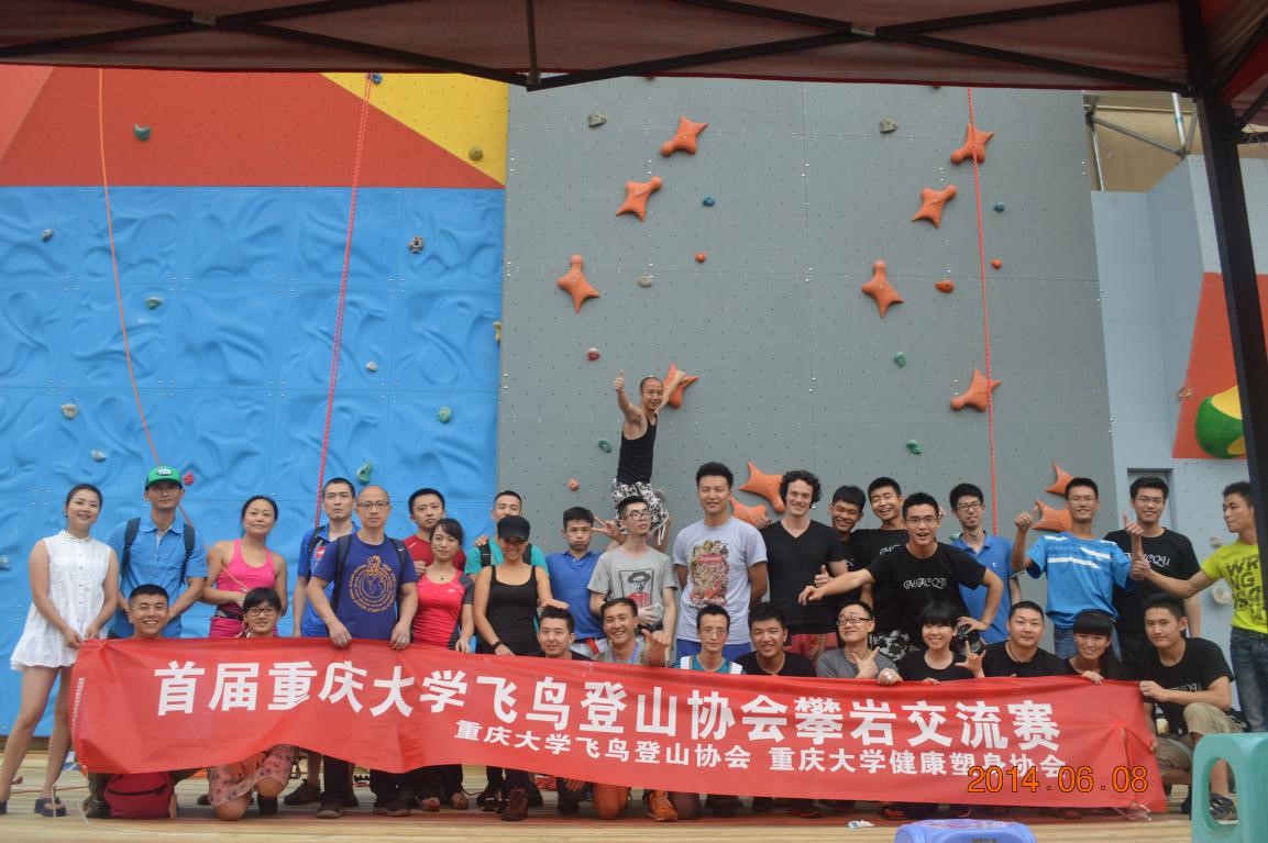 据重庆大学飞鸟登山协会的会长张飞描述,这次交流赛设置了学生组和玩家组,目的在于在新手老手都参加比赛,通过比赛这么一个气氛激发新手对攀岩的激情,也提供一个技巧展示的平台,让攀岩老手能够手把手教学,为攀岩运动的发展融入新生力量。或许这是推动攀岩运动发展的新思路,飞鸟也会一年一年的继续做下去,并将此打造成本社团的品牌活动。