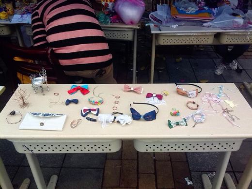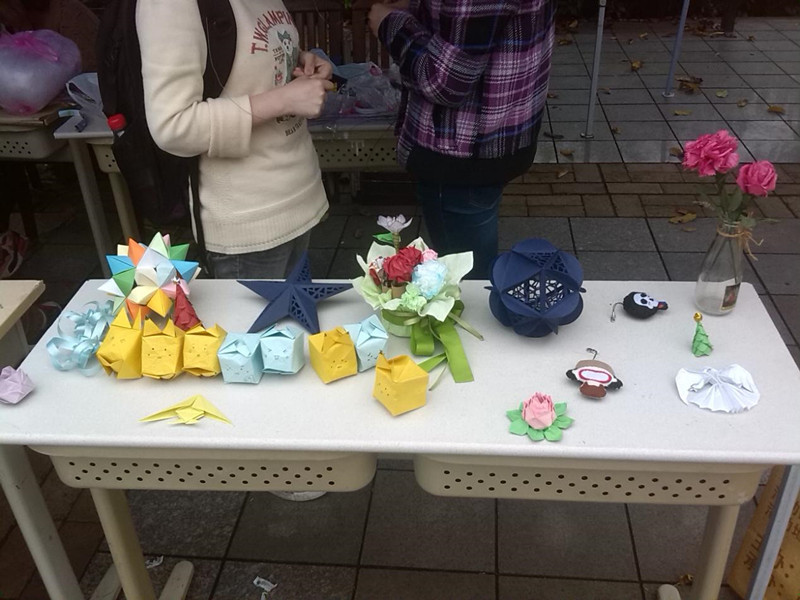 上午10点左右,服装社工作人员到场将活动现场布置好。中午12点手工开放日活动正式开始,活动现场展示了各种各样的手工品。既有充满创意的折纸及立体剪纸,也有可爱的不织布挂饰,还有漂亮实用的各种女生手工饰品。除了手工作品展示外,活动现场也安排了现场手工教学环节,吸引了大批同学。