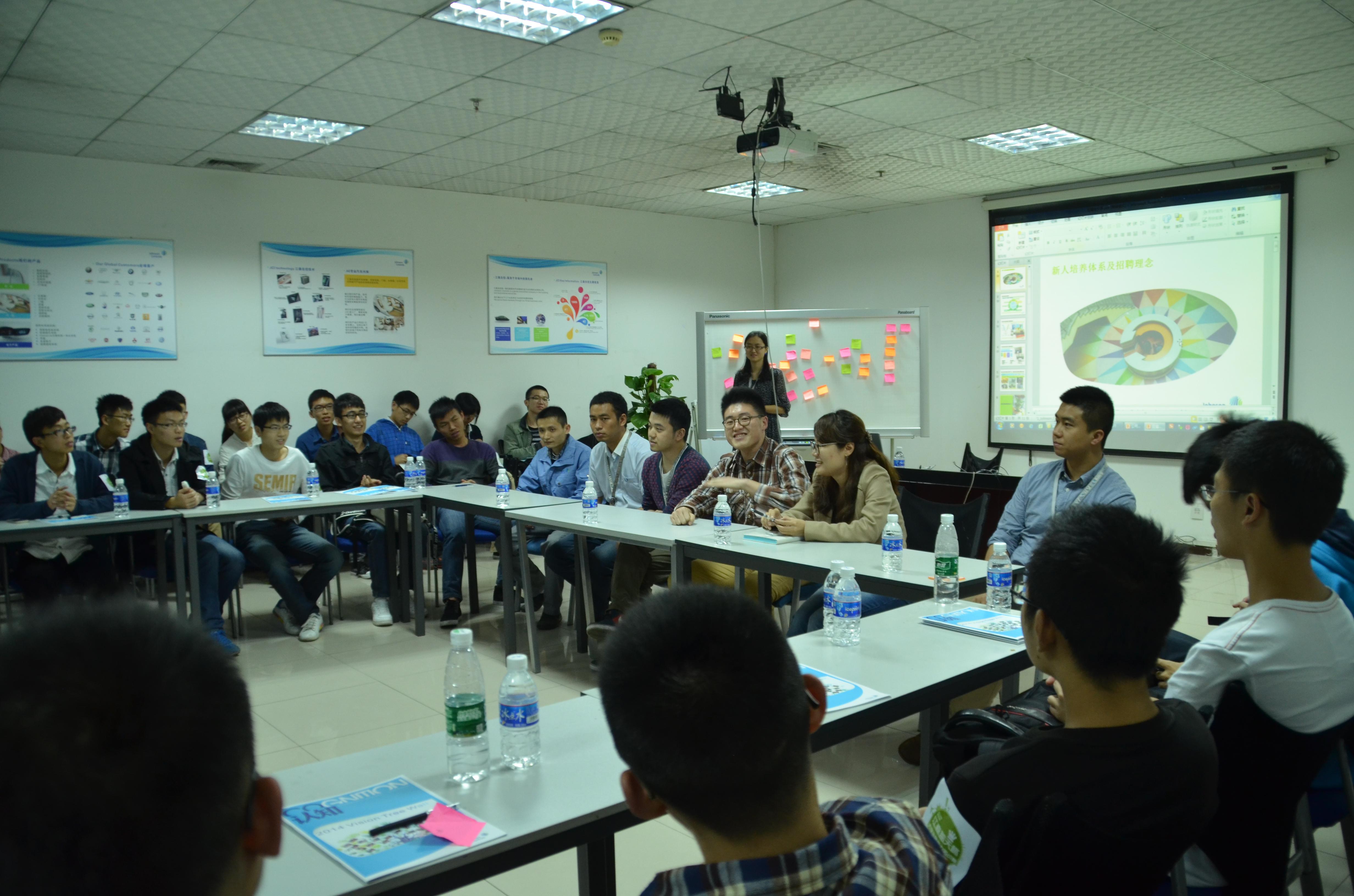 交流分享环节更是将整个活动引向高潮。身为世界五百强企业,江森集团有其自身的发展理念和特色优势,但其发展也是离不开人才培养的。根据不同的人才需求,公司为员工提供了两条发展道路:专业通道和管理通道。让员工依据自身优势自由发展,为其提供充分的成长空间,这也是公司的用人理念。那怎样的人才才是江森企业需要的呢?这是队员们的共同问题。对此,江森负责人解答了同学们的问题:“才能、激情和组织需求是实现职业发展的三个重要因素。”一个优秀的员工不仅要有足够的才能,无限的工作激情,重要的还要符合组织的需求,做一个有价值的人。对于职位提升的问题,导师也队员们提出了建设性的意见:“脚踏实地,认真低调的做事。工厂是最基础的阵地,应到一线去磨练自己。”