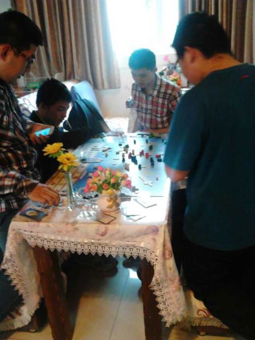 本次“桌游活动月”为期1个月,地点在商业街B栋3楼都乐休闲吧,于每周日下午2点半开始,由桌游社的社员们迎接前来参与活动的同学们。同学们准备好了之后,由社团成员为他们分好组,精心挑选适合的桌游,并通过绘声绘色的讲解,把复杂的游戏规则讲的浅显易懂,容易上手,让同学们很快能够投入进去,体会其中的乐趣。虽然当一个暂时的桌游讲师并不如想象中的那么轻松加愉快,甚至还会被折磨得要死要活的,但是每一周都能看到一些新面孔前来参与,并且在过程中表达出发自内心的愉悦,还是很满足的。