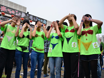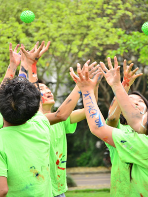 竞赛开始之前,江森企业的参与者分别对各队进行指导,告诉他们:“要团结合作,运用大家一起的智慧攻破一道道关卡。”第一轮“光猪跑”包含五个活动:珠行万里、同舟共济、穿越纸线、抛绣球、风火轮转,一个个既具有趣味性有富有挑战性的小游戏从各个方面挑战队员们的创造力和团队合作。值得一提的是每队队员精心准备的着装,他们很好地体现了这次比赛的主题:创意、领导力、可持续。他们有废旧报纸制衣的,有在身上涂满油彩的,还有画着环保标志的衣服。其中的一个团队,她们的主题是极限蓝天,背面画的是蓝天绿叶,在抛绣球环节中,她们将球扔起,一齐伸手将球接住,如同一齐去拥抱蓝天,充分展现出了“创新、可持续”的主题。