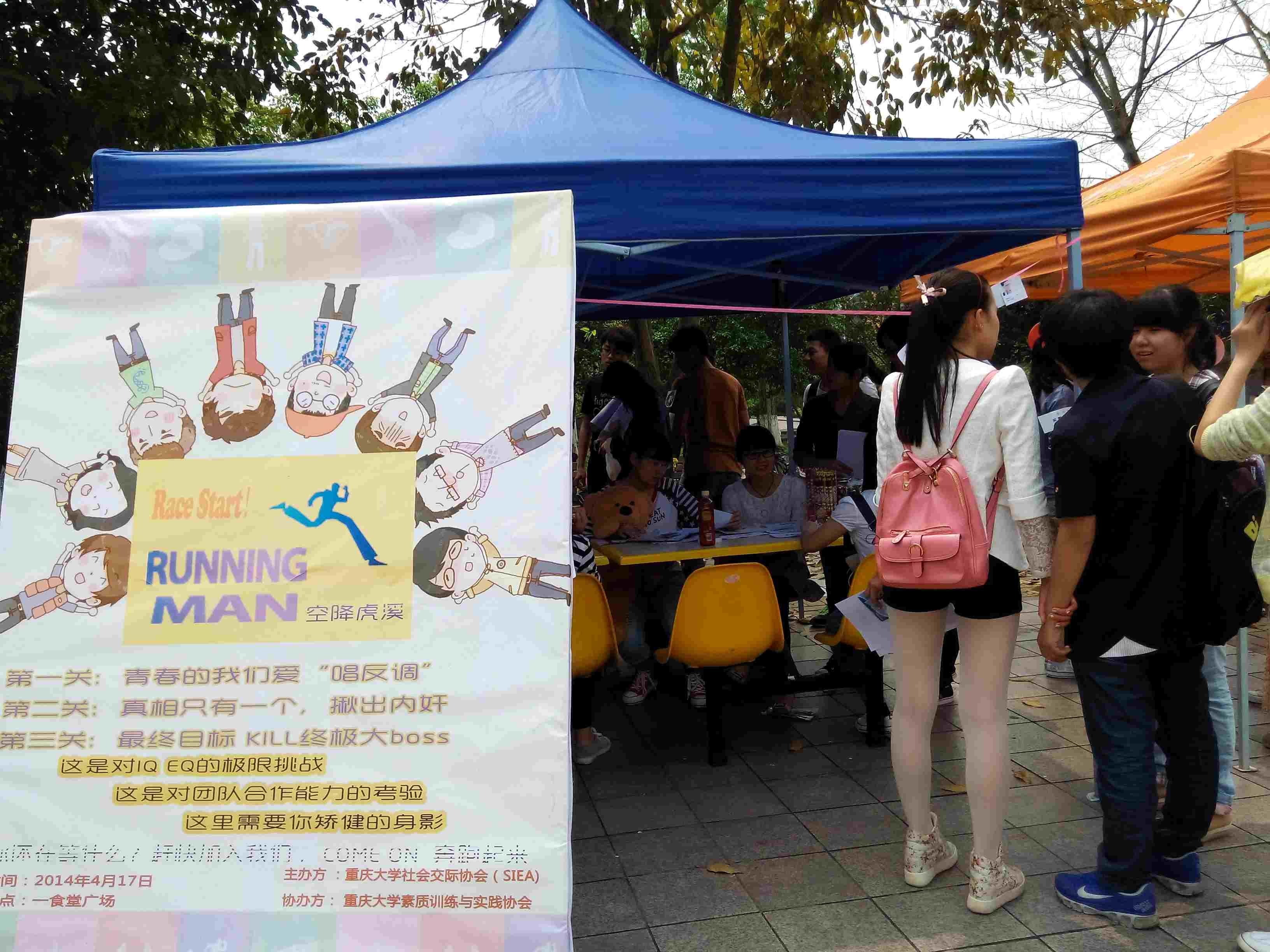 四月的春风又吹来了一个追逐梦想的花季,风华正茂的我们又在烂漫的人生路上继续寻觅,继续向着自由奔跑。社会交际协会策划并联手重庆大学素质训练与实践协会举办了一次别开生面的活动,通过结合韩国综艺娱乐节目RUNNING MAN的游戏风格以及游戏形式,让大伙在奔跑中感受前所未有的游戏体验,在阳光的沐浴下体验青春的多姿多彩。本次活动由社团联合会主办,重庆大学素质训练与实践协会承办。