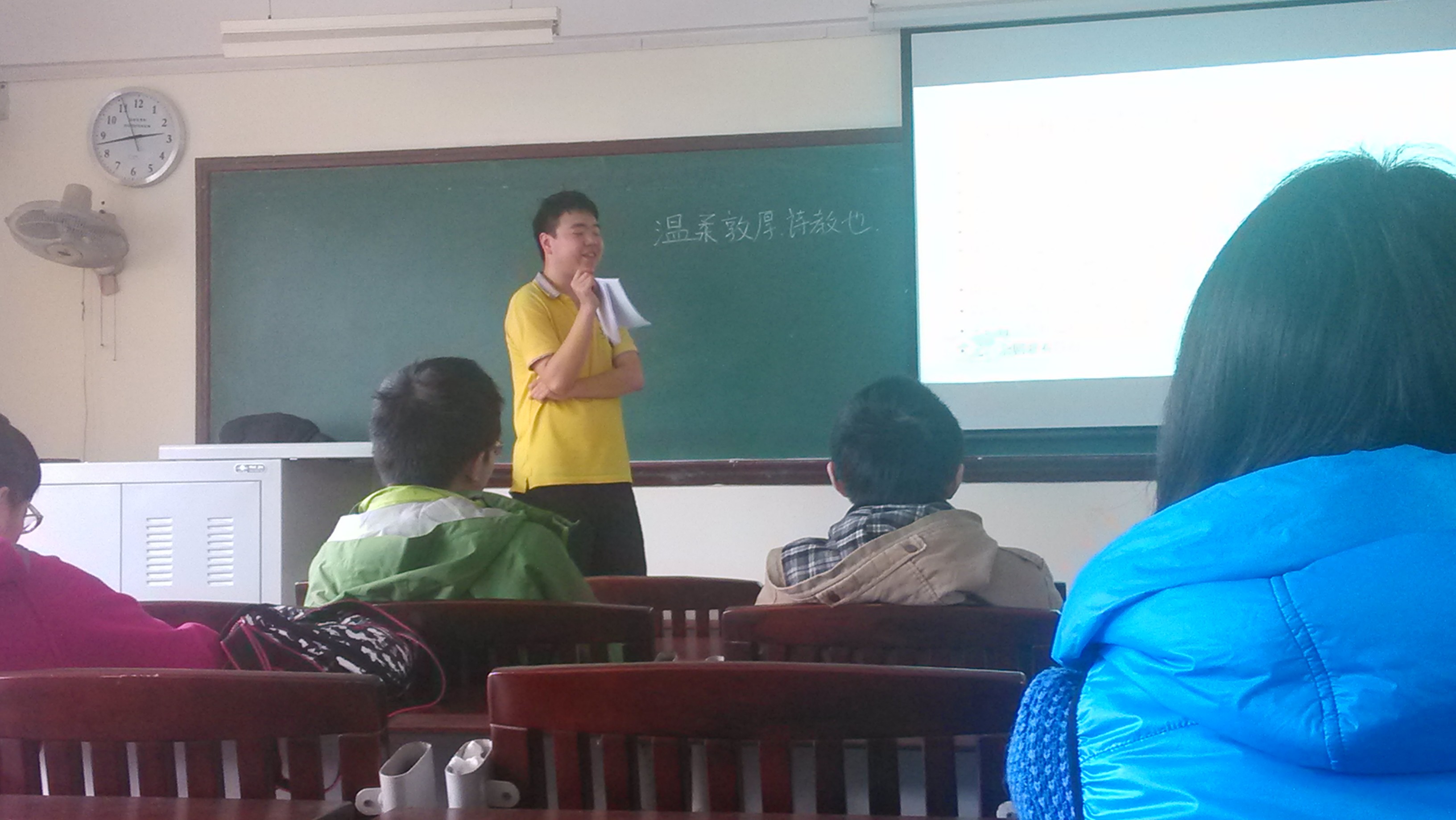 2013年3月16日两点半,国学会在第一教学楼1216举办了浩然讲坛:诗意阑珊。讲坛的主要内容为古典诗歌文学的美学欣赏。此次活动由社团联合会主办,由国学会承办。