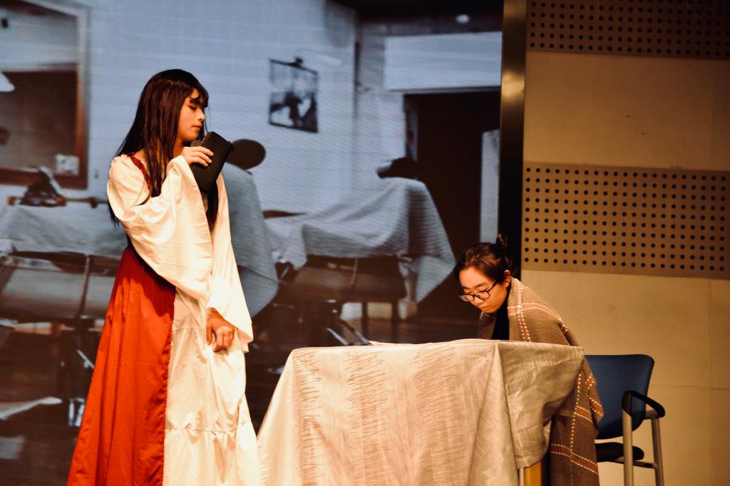 18级土建班表演的话剧《麦琪的礼物》中,出人意料的情节、捧腹大笑的反串和台词、紧贴社会热点的关于校园贷的讨论令在场观众在收获一份欢乐的同时也提高了财产安全意识。分别由18级电气班、经管班的带来的歌唱节目《年少有为》歌舞节目《GoodTime》中展现了当代青年对于爱情的态度、对美好生活的向往。紧随其后,17级电气班的同学情感饱满地朗诵了阿多尼斯的诗歌《风的君王》,抑扬顿挫、富含深情的朗诵展现了他们对诗歌纯粹的热爱。现场的气氛随着歌舞一步步走向高潮,又随着朗诵者的富有感染力的声音渐渐舒缓下来。继而,18级的同学为我们带来了民族舞——《不染》,曼妙的舞姿加上悠扬的音乐令观众陶醉其中,舞者精湛的技艺引得现场掌声连连。
