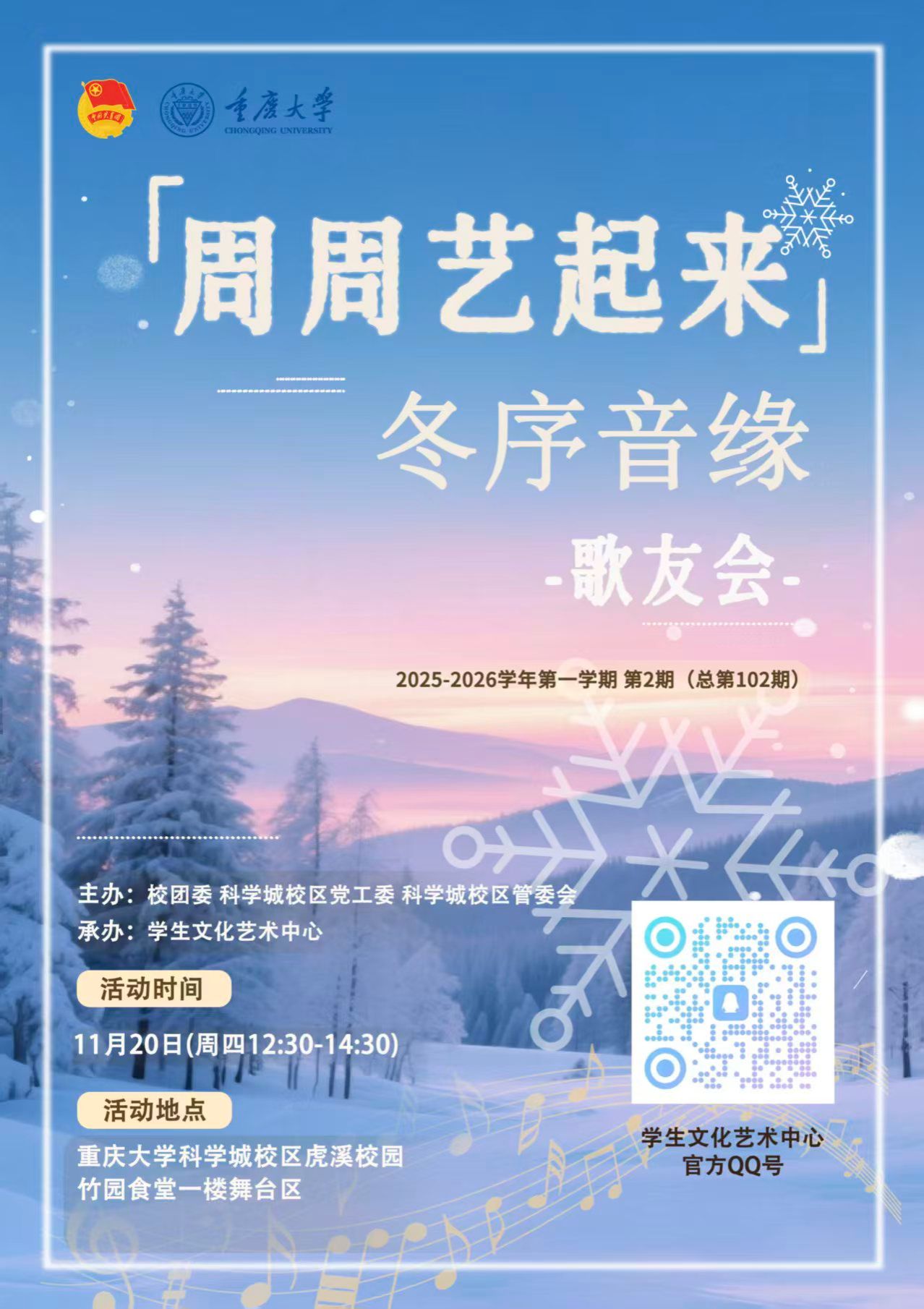 立冬已过,小雪将至,冬天的脚步缓缓踏入校园。为了进一步丰富校园生活,营造出和谐的校园氛围,学生文化艺术中心将举办“冬序音缘”歌友会。东风知我意,歌声遇知音,我们将共赴这场冬与声的邀约,珍藏音乐里的温暖与美好。