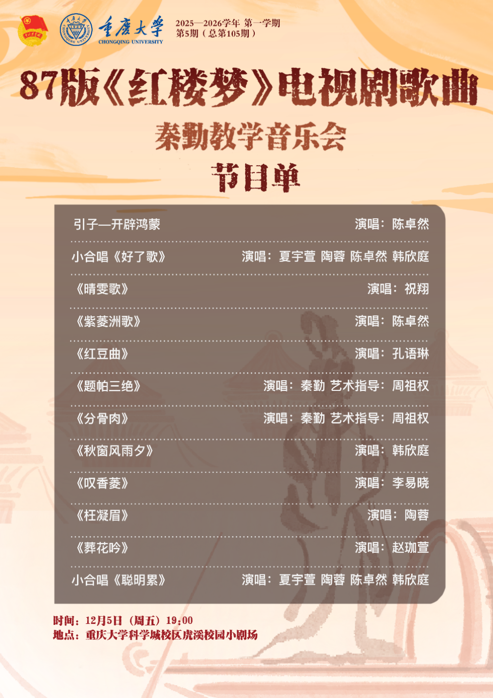 我们诚挚邀请您共赴这场音乐会,一起“梦回红楼”。在这里,你会听到熟悉的旋律被重新诠释。这是一次与“古典诗词”的重逢,也是对“红楼旧梦”的再一次回望。