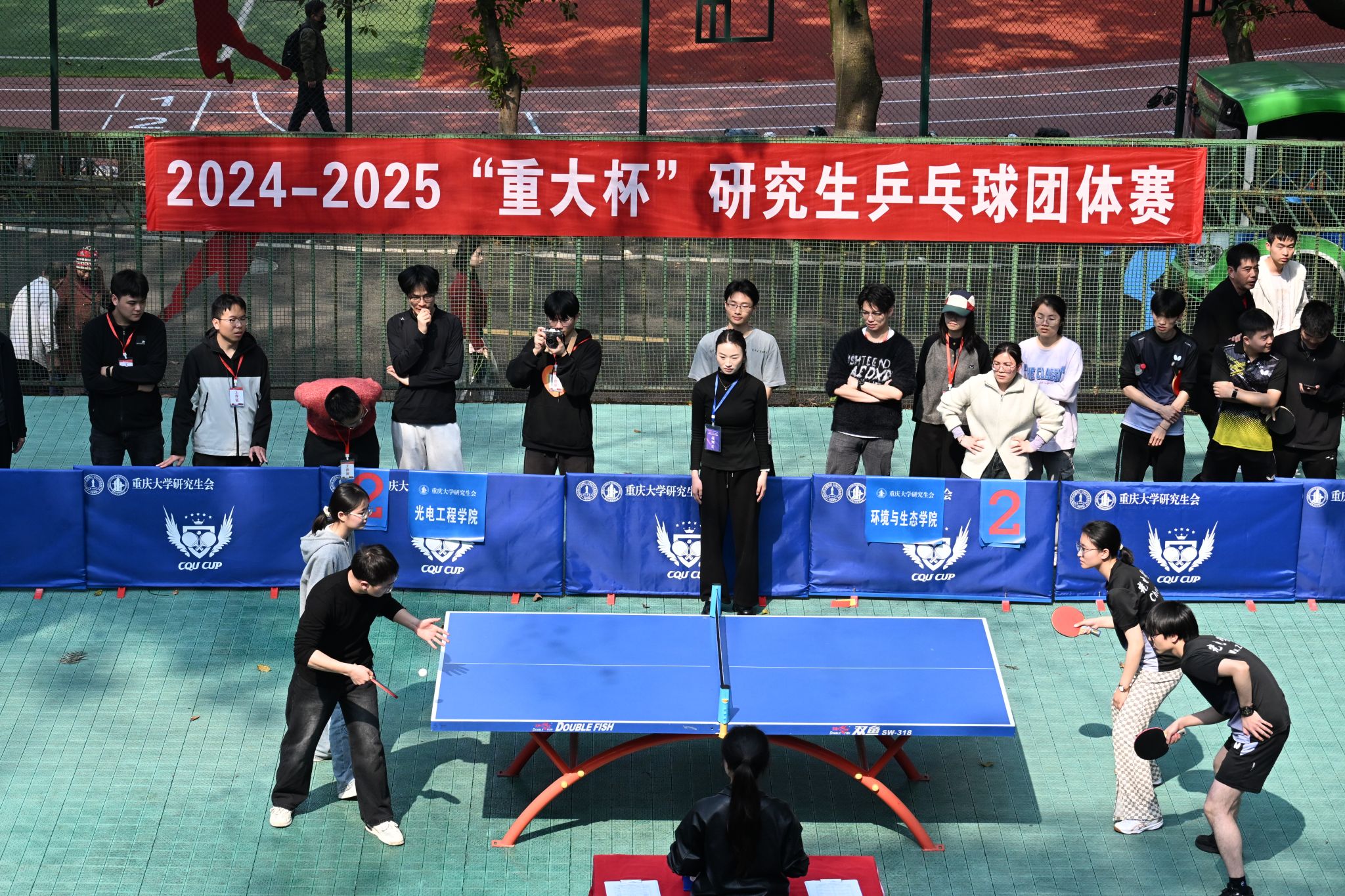 2025年4月19日,由重庆大学体育工作委员会主办,共青团重庆大学委员会、重庆大学党委学工部、重庆大学体育学院承办,重庆大学研究生会执行的2024-2025“重大杯”研究生乒乓球团体赛在A区室内篮球馆圆满落幕。校团委副书记符音出席决赛现场。
